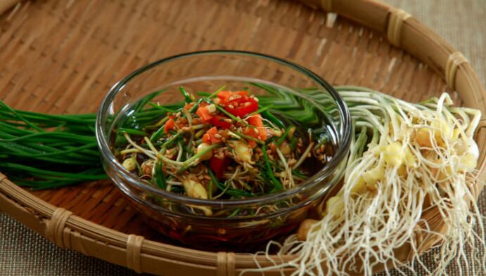 ① 달래는 뿌리 안쪽 불순물을 제거한 뒤 깨끗이 씻어 먹기 좋은 길이로 자른다.