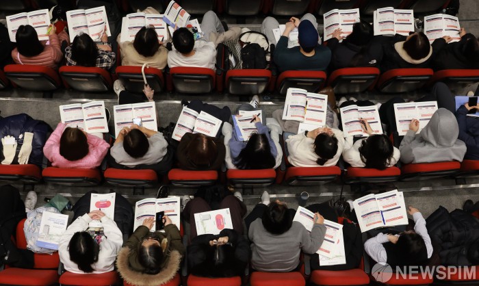 [서울=뉴스핌] 김학선 기자 = 13일 서울 성북구 고려대학교 인촌기념관에서 열린 2026 대입 정시모집 대비 진학지도 설명회에서 수험생과 학부모들이 강의를 듣고 있다. 2025.12.13 yooksa@newspim.com |