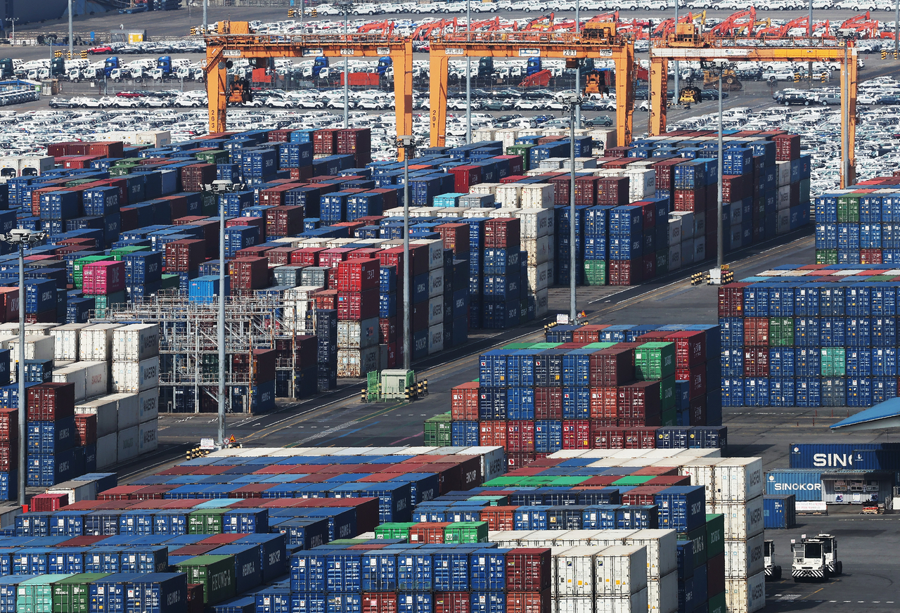 지난 1일 경기도 평택항에 컨테이너가 쌓여있는 모습. [연합] |
