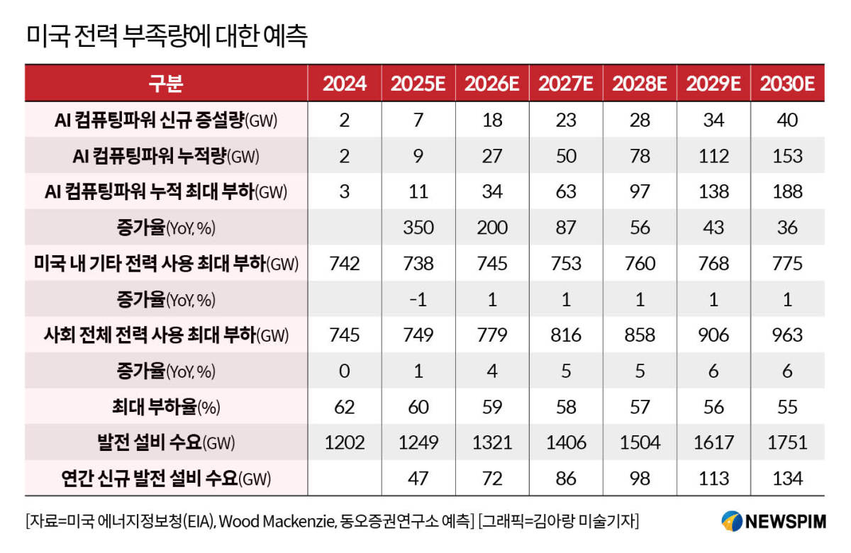 특히, AI 데이터센터 구축을 선도하는 미국의 전력 부족 문제는 더욱 가시화되고 있다.