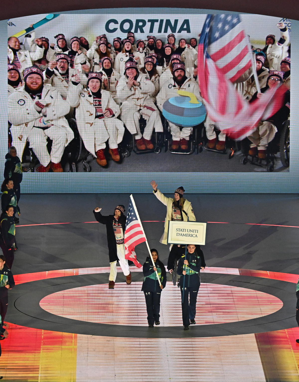 6일(현지시간) 이탈리아 아레나 디 베로나에서 열린 2026 밀라노 코르티나 동계패럴림픽 개회식에서 미국선수단이 입장하고 있다. 베로나=김두홍 기자 kimdh@sportsworldi.com 2026.03.07.