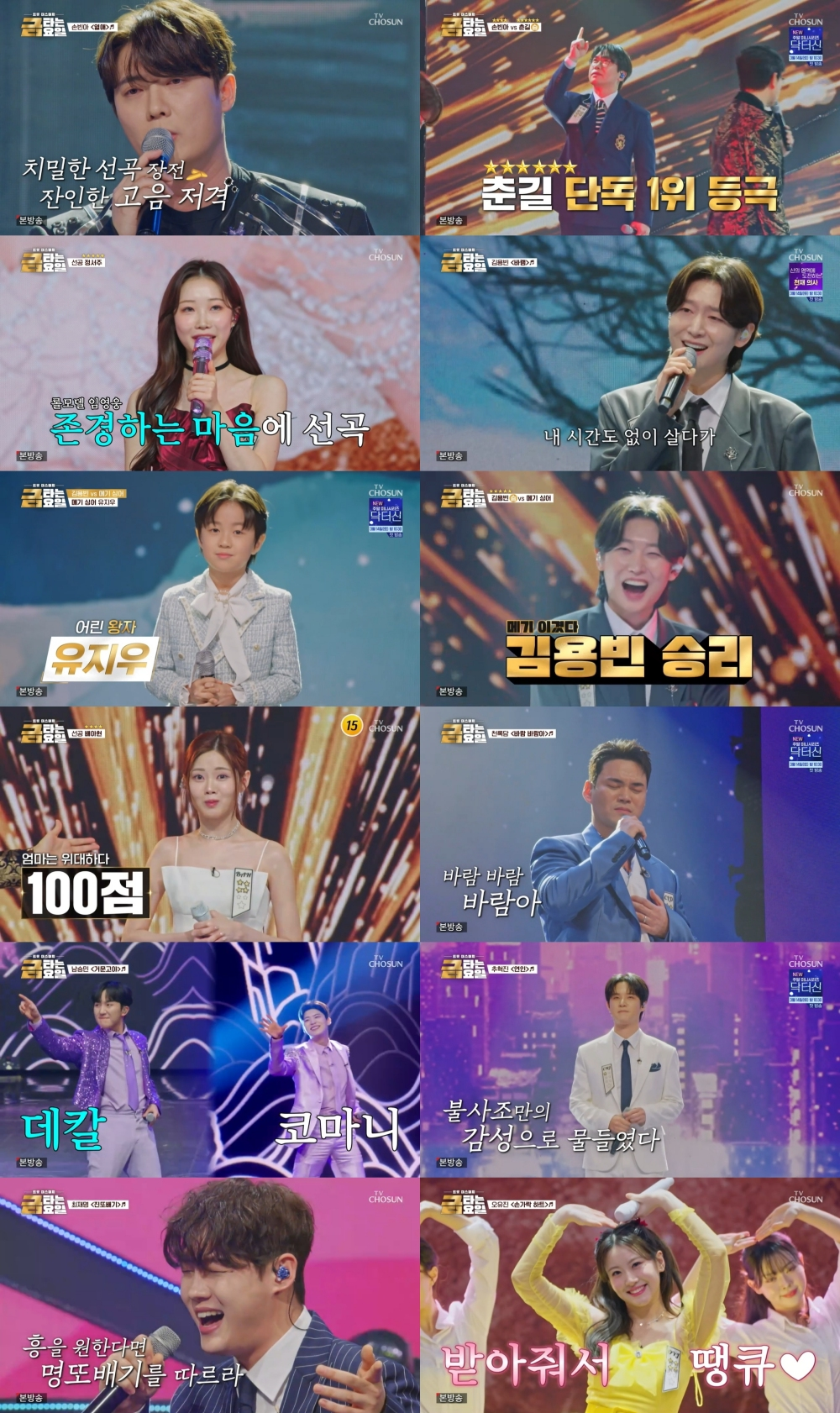 이날 방송에서는 춘길이 최초로 황금별 6개를 달성하며 선두를 굳건히 지켰다. 그리고 김용빈과 정서주, 배아현이 5스타로 뒤를 바짝 추격하며 상위권 경쟁이 더욱 치열해질 것을 예고했다. 과연 가장 먼저 골든컵을 차지할 주인공은 누가 될지, 트롯 톱스타들의 치열한 금빛 데스매치는 다음 주에도 계속된다.