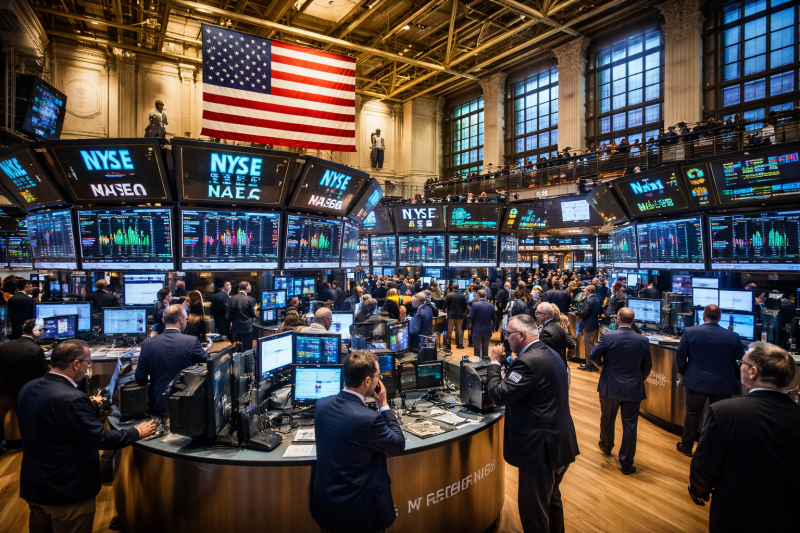 미국 뉴욕증권거래소(NYSE)를 표현한 가상의 이미지. [사진=챗GPT] |