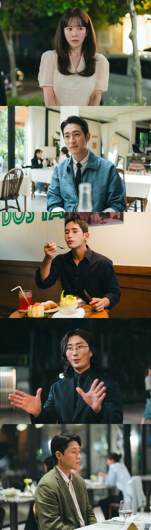 공개된 사진에는 이의영의 다이내믹한 소개팅 여정을 짐작게 하는 인물들의 면면이 담겨 있어 호기심을 자극한다. 반듯한 인상의 스타 수학강사 윤박(윤박 분)은 마치 학생을 평가하는 듯한 눈빛으로 자리를 차지하고 있고 먹는 데 한껏 집중한 UDT 출신 재활 트레이너 육준서(육준서 분)는 연애보다 음식이 더 중요한 건 아닐지 궁금증을 자아낸다.