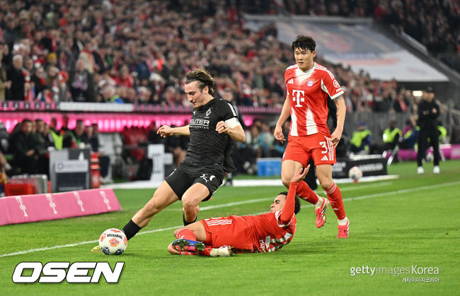 경기 흐름에서도 김민재의 안정감은 분명했다. 묀헨글라트바흐가 전반 초반 몇 차례 공격을 시도했지만 김민재와 다요 우파메카노가 중심을 잡으면서 위협적인 장면은 많지 않았다. 긴 패스를 차단하거나 전방 압박 상황에서 공을 회수하며 상대 공격 전개를 끊어냈다.