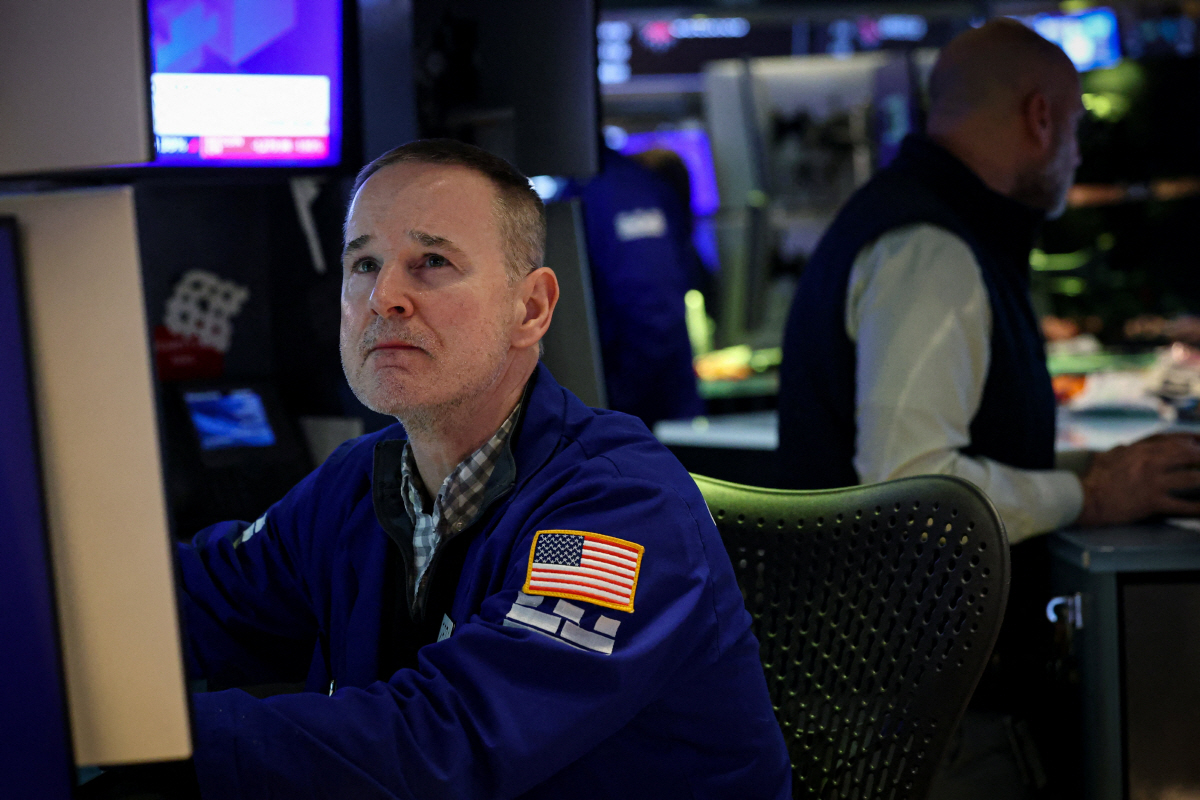 뉴욕증권거래소에서 27일(현지시간) 트레이더가 주가를 살피고 있다. 뉴욕/로이터연합뉴스