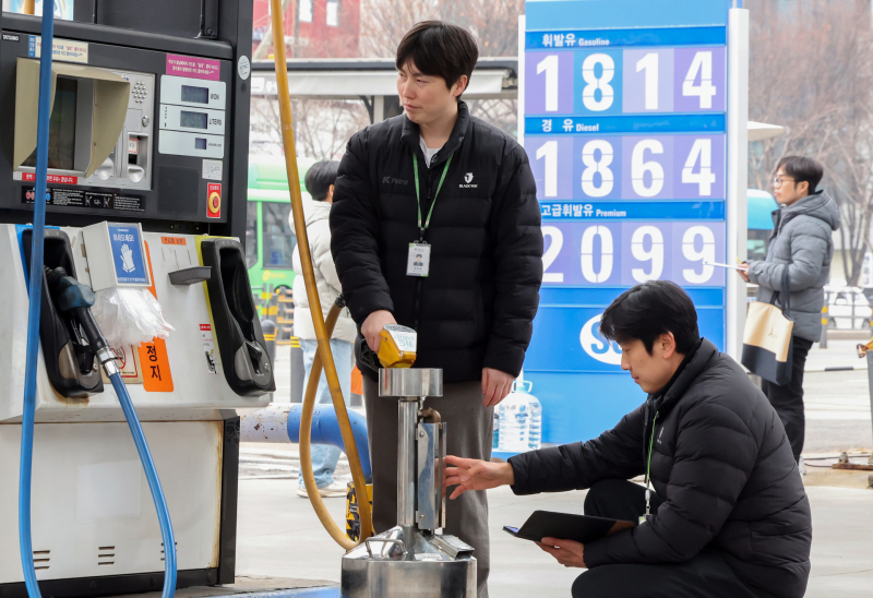 지난 6일 오후 서울의 한 주유소에서 지방자치단체 및 한국석유관리원 관계자들이 가격표지판과 정량검사를 하고 있다. [사진=뉴스1] |