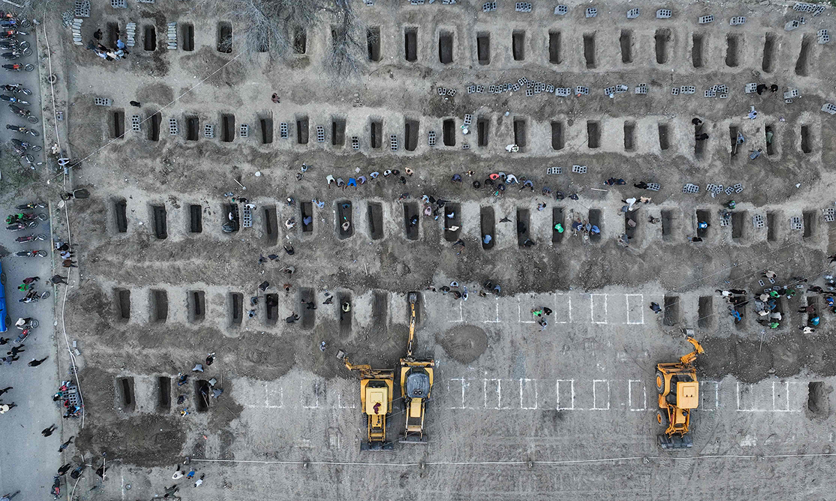 지난 3일(현지시간) 이란 남부 호르모즈간주 미나브시에서 초등학교 오폭으로 사망한 희생자들의 합동장례식이 열리는 가운데, 장지가 빽빽이 조성되고 있다.