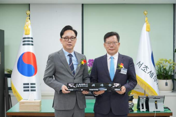 서초세무서 명예서장으로 위촉된 최재웅 변호사(오른쪽) |