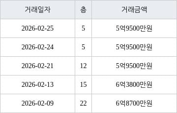 국토교통부 실거래가 공개시스템에 따르면 지난 2026년 2월 13일 인천광역시 연수구 송도동 e편한세상송도아파트 15층 전용면적 84㎡형이 6억3800만원에 거래됐다. 지난 2026년 2월 25일 같은 면적형인 5층 물건이 5억9500만원에 실거래된 것과 비교해 4300만원 높은 가격이다.
