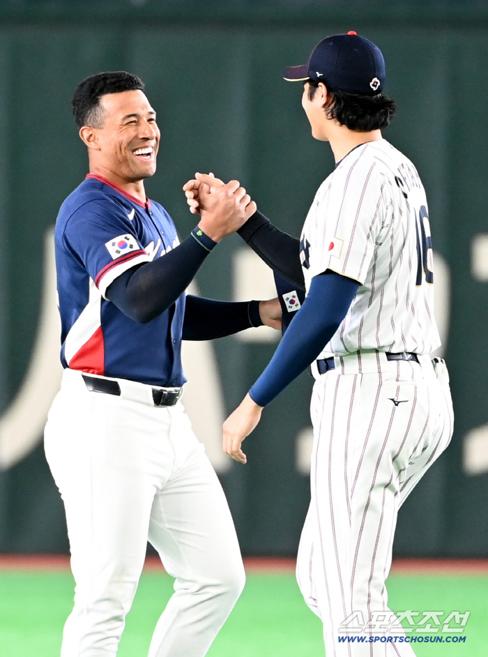 7일 일본 도쿄돔에서 열린 WBC(월드베이스볼클래식) 한국과 일본의 경기. 경기 전 오타니와 자마이 존스가 인사를 나누고 있다. 도쿄(일본)=허상욱 기자wook@sportschosun.com/2026.03.07/