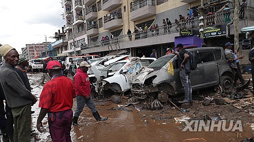 홍수 피해를 본 케냐 수도 나이로비 거리[신화=연합뉴스. 재판매 및 DB 금지] |