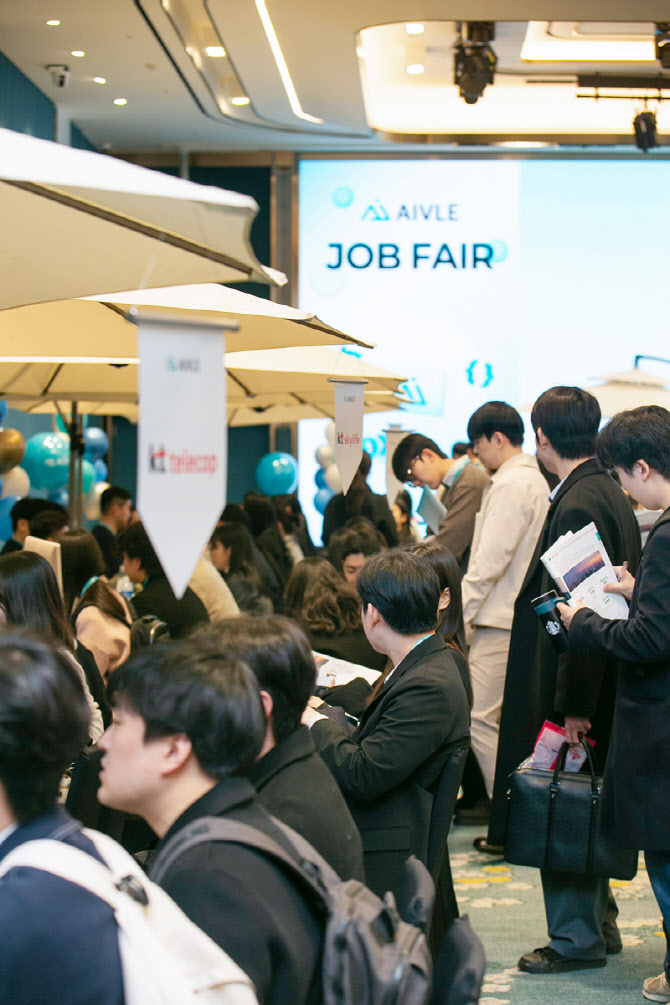 KT가 청년 디지털 인재 양성 프로그램 에이블스쿨(KT AIVLE School) 8기 수료식을 진행하고 교육을 성공적으로 마쳤다고 8일 밝혔다. 사진은 지난 2월 27일, 서울 송파구의 소피텔 앰배서더 서울에서 교육생과 ICT 기업을 대상으로 진행한 취업박람회 모습. 사진=KT |