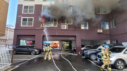 (청도=연합뉴스) 이강일 기자 = 지난 7일 오후 3시57분께 경북 청도군 청도읍의 한 아파트 2층에서 전동킥보드 충전 중 발생한 것으로 추정되는 불이 났다.