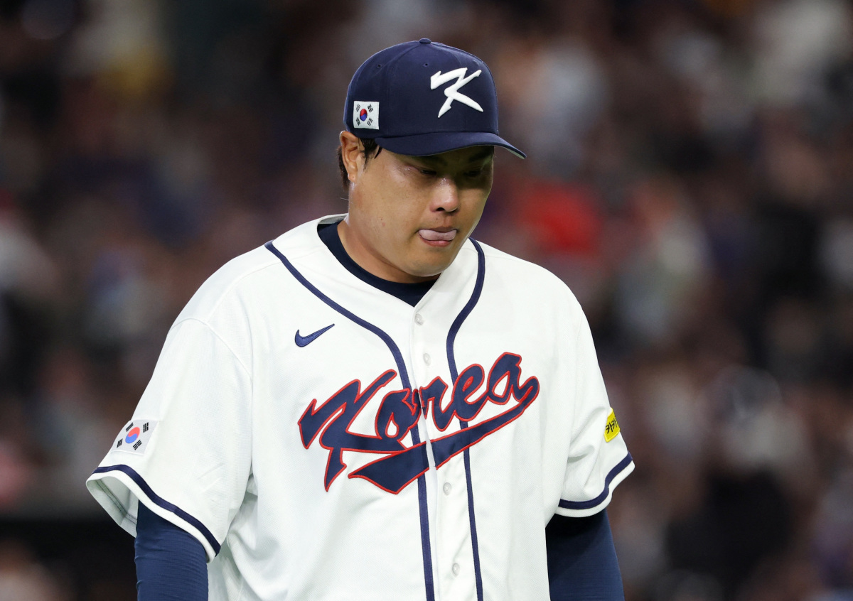 [도쿄 로이터=뉴스핌] 한지용 인턴기자 = 류현진이 2026 월드베이스볼클래식(WBC) 조별리그 C조 대만과의 경기에서 3회 투구를 마치고 마운드를 내려오고 있다. 2026.03.08 football1229@newspim.com |