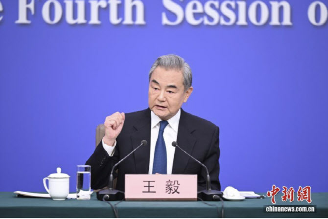 왕이 중국공산당 중앙외사판공실 주임 겸 외교부장(장관)은 8일 오전 베이징 미디어센터에서 열린 양회(전국인민정치협상회의+전국인민대표대회) 중 외교 주제 기자회견에서 “오늘날 세계에서 100년만의 변화가 가속화되고 전쟁과 갈등이 연이어 발생하고 있다”면서 “중국 외교는 국가의 주권, 안보, 발전 이익을 확고히 수호하고, 국제법치주의와 공정, 정의를 확고히 수호하며, 모든 일방적 행위와 강권에 의한 괴롭힘에 단호히 반대한다”고 밝혔다.