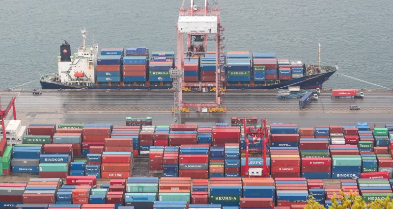 부산 남구 신선대 부두에서 컨테이너선들이 하역작업을 하고 있다. 뉴스1 |
