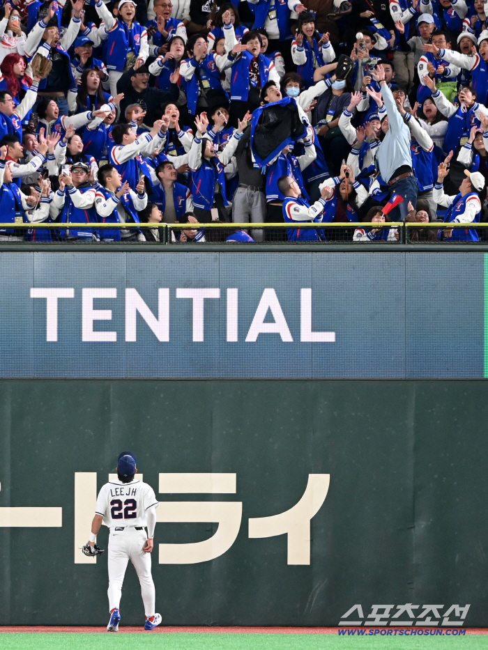 8일 일본 도쿄돔에서 열린 WBC(월드베이스볼클래식) 한국과 대만의 경기, 8회초 2사 2루 우익수 이정후가 페어차일드에 재역전 2점홈런 타구를 바라보고 있다. 도쿄(일본)=허상욱 기자wook@sportschosun.com/2026.03.08/ |