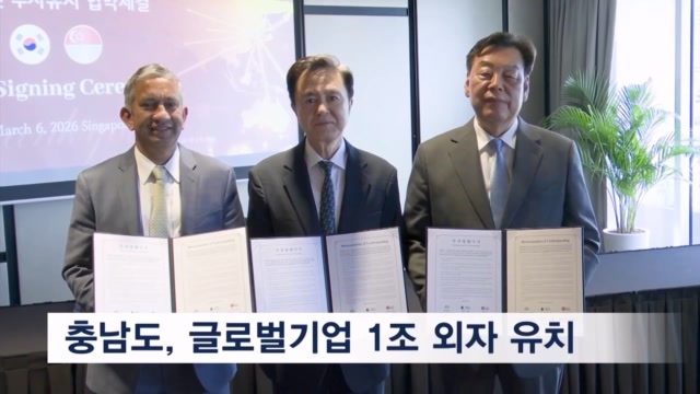 김태흠 충남지사는 지난 6일 싱가포르 현지에서 니틴 압테 뷔나그룹 대표와 정광진 뷔나그룹 한국 대표, 가세로 태안군수와 투자 양해각서를 체결했습니다.