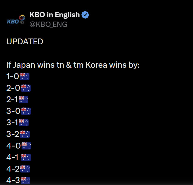 데이브 닐슨 호주 감독은 “분명히 우리가 계산해야 할 숫자가 존재하지만, 무조건 승리하기 위해 경기할 것이다”며 “타자들 몸 상태는 좋고, 투수들도 훌륭하다. 일본전과 마찬가지로 한국 타선의 득점을 막을 것”이라고 말했다.