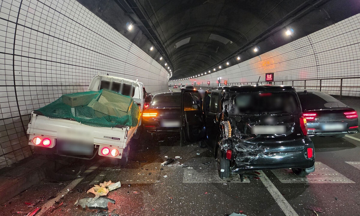 9일 부산 부산진경찰서에 따르면 이날 오전 8시58분 부산 동구 수정터널 내부에서 30대 A씨가 운전하던 1t 트럭이 감만동 방면으로 주행하다 차량 정체로 정차해 있던 차량 3대를 잇달아 들이받았다.