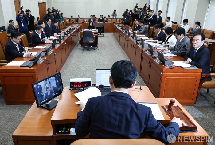[서울=뉴스핌] 윤창빈 기자 = 김상훈 위원장이 9일 오후 서울 여의도 국회에서 열린 대미투자특별법 처리를 위한 특별위원회 전체회의에서 의사봉을 두드리고 있다. 2026.03.09 pangbin@newspim.com