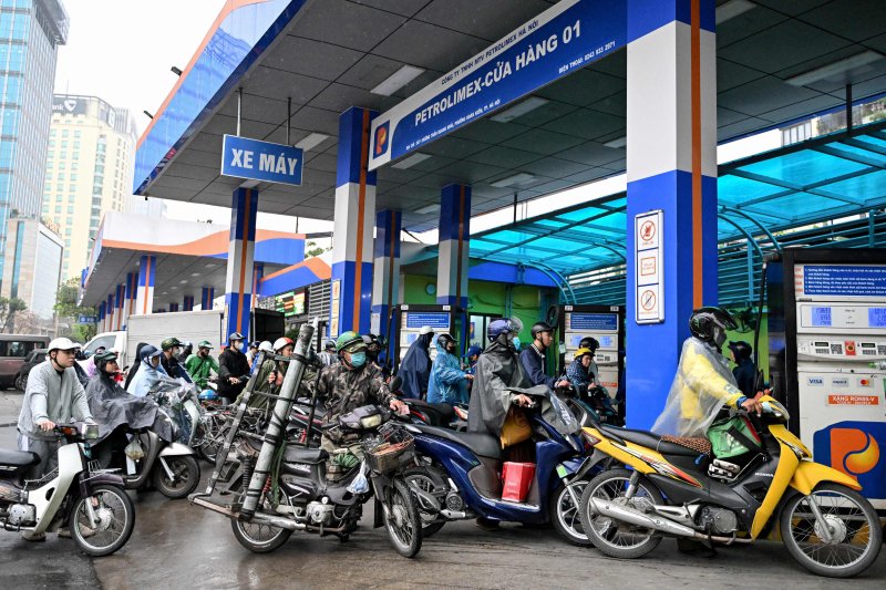 9일 베트남 하노이에 위치한 한 주유소에서 오토바이 운전자들이 주유를 대기하고 있다. 연합AFP외신