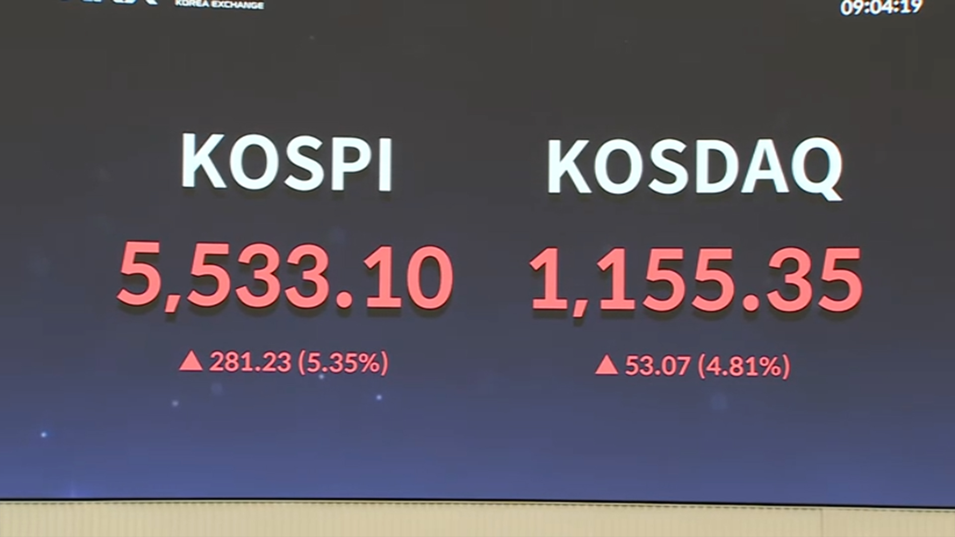코스닥지수는 4.15% 오른 1,147.99에 출발했고, 원/달러 환율은 24.7원 급락해 1,470.8원으로 내려왔습니다.