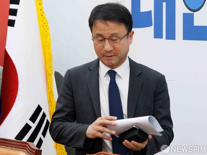 [서울=뉴스핌] 윤창빈 기자 = 한병도 더불어민주당 원내대표가 10일 오전 서울 여의도 국회에서 열린 원내대책회의에 참석하고 있다. 2026.03.10 pangbin@newspim.com