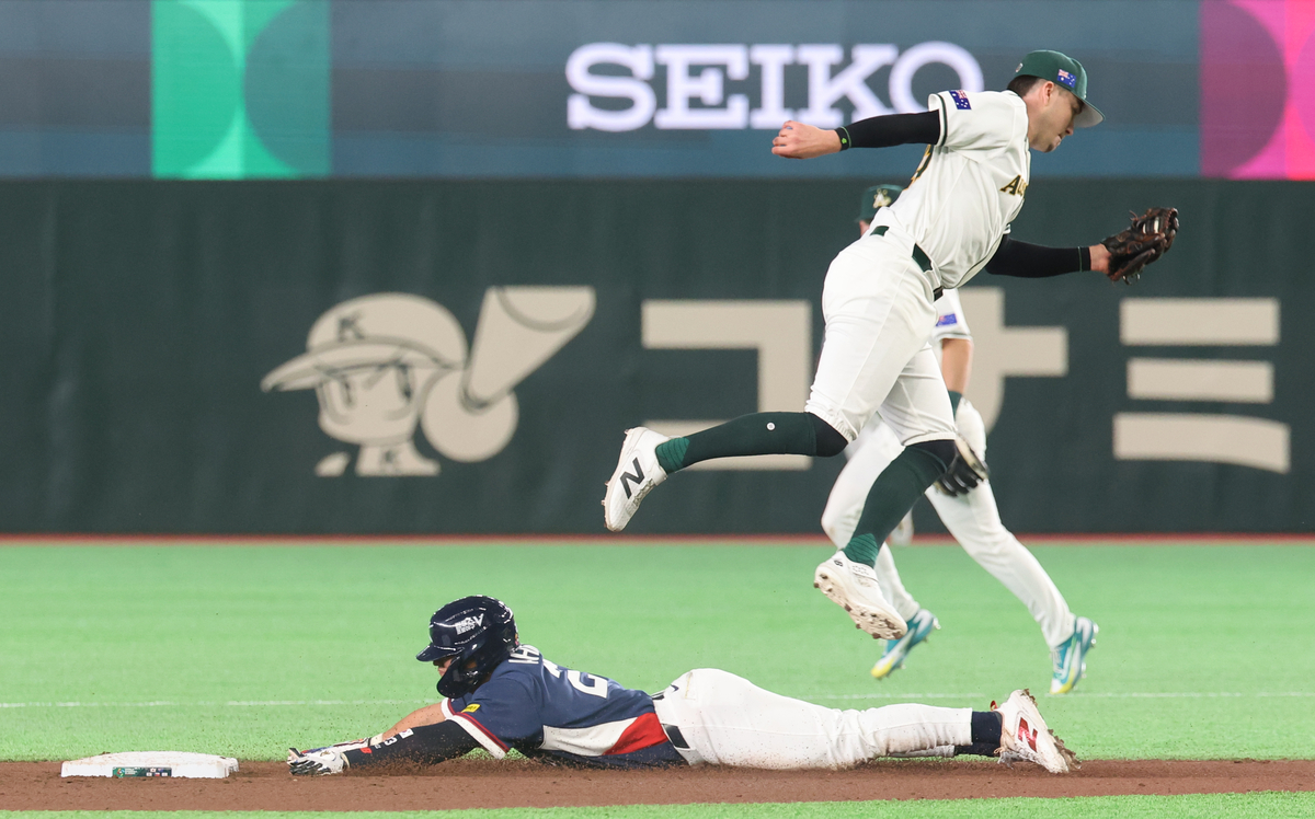 야구대표팀 안현민이 9일 일본 도쿄돔에서 열린 2026 WBC 호주전에서 5회초 2루 도루에 성공하고 있다. 연합뉴스 |