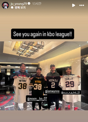손주영은 최근 자신의 인스타그램 스토리에 "KBO에서 다시 만나자"라는 글과 함께 코앤윈, 문보경, 송승기와 찍은 사진을 공유했다. 코앤윈은 지난해 대체 외국인 선수로 6주간 LG트윈스 투수로 활약했다.