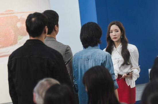 이런 가운데 공개된 사진 속에는 수석경매사 한설아가 김윤지 살해 혐의로 긴급 체포되는 순간이 담겨 있다. 경매장을 벗어날 새도 없이 고객들이 모두 보는 앞에서 수갑을 차게 된 한설아의 얼굴에는 당혹스러움이 묻어난다.