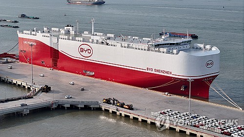 수출 대기 중인 중국 전기차 BYD |
