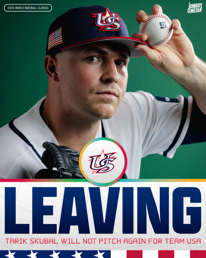 [스포츠조선 강우진 기자]메이저리그 사이영상에 빛나는 타릭 스쿠발이 결국 미국 대표팀을 떠난다. 당초 월드 베이스볼 클래식(WBC)에서 1경기만 등판하겠다는 계획을 그대로 유지한 것이다.