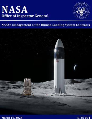 NASA 감사관실(OIG)은 10일(현지시간) 'NASA의 유인 착륙 시스템 계약 관리' 보고서를 통해 "달 착륙선 개발에 어려움이 있어 계획한 아르테미스 임무 날짜들이 지연됐다"며 "스페이스X의 착륙선은 2027년 6월까지도 준비되지 않을 것"이라고 밝혔다.