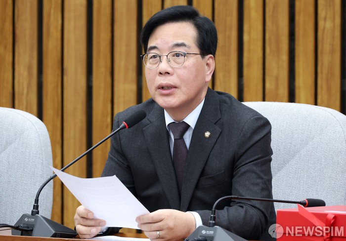 [서울=뉴스핌] 정일구 기자 = 송언석 국민의힘 원내대표가 11일 오전 서울 여의도 국회에서 열린 지역발전 영입 인재 환영식에서 발언하고 있다. 2026.03.11 mironj19@newspim.com