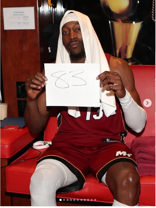 마이애미의 뱀 아데바요가 11일 NBA 홈 경기에서 워싱턴을 맞아 83점을 올린 뒤 자축하는 모습. /아데바요 인스타그램 |