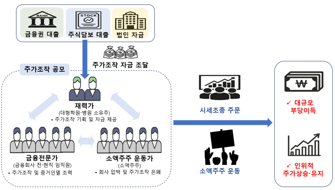 금융위 관계자는 “주가조작 근절 합동대응단 1호 사건으로 집중 조사한 결과 지급정지 조치 및 압수수색으로 범죄행위를 중단시켜 피해 확산을 막았다”며 “‘주가조작은 패가망신’이 될 수 있도록 검찰 수사에 협조하고, 부당이득의 최대 2배에 달하는 과징금 부과 등 행정제재로 혐의자들이 ‘원 스트라이크 아웃’되도록 노력할 것”이라고 말했다.