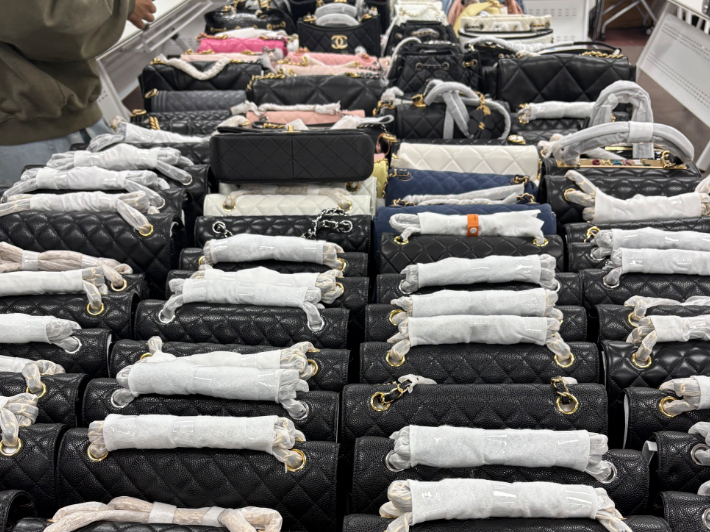경찰은 라이브 방송을 통해 모조품이 판매된다는 첩보를 입수한 뒤 탐문과 추적 수사를 통해 보관창고를 확인했다.