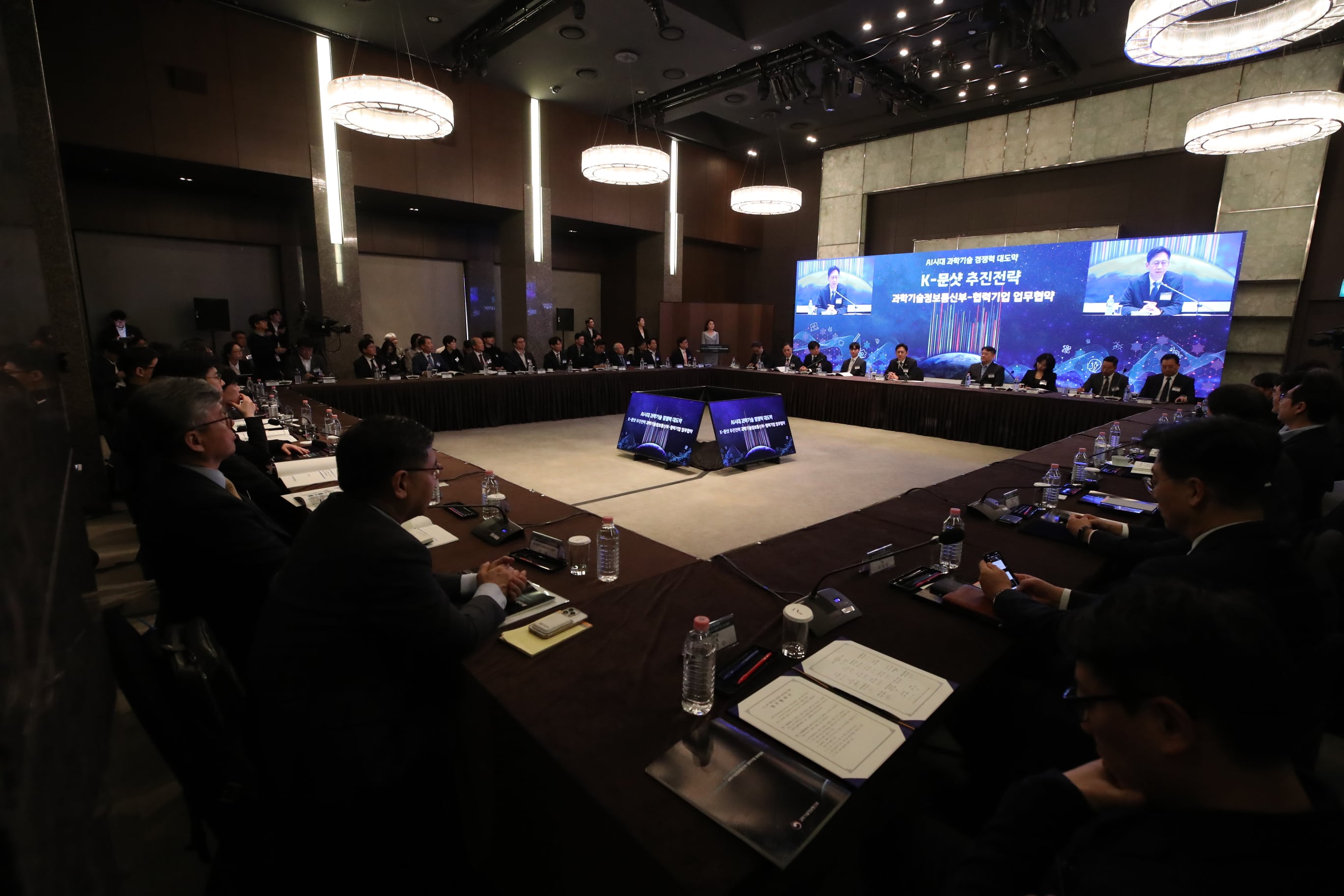 과학기술정보통신부는 11일 서울 중구 더 플라자 호텔에서 ‘K-문샷 프로젝트’ 협력 기업 33곳과 업무 협약을 맺었다. 과기부는 “한국판 ‘제네시스 미션’인 K-문샷 프로젝트를 구체적으로 실행하는 첫 조치”라고 밝혔다.