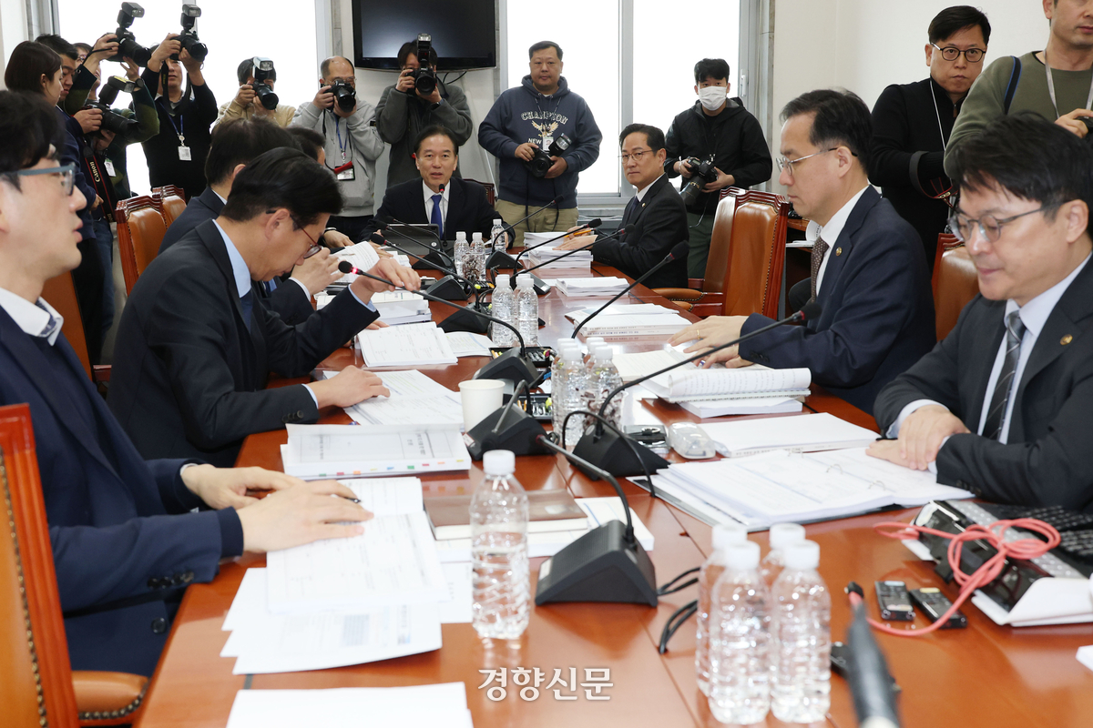 여야 의원들이 지난 5일 국회에서 열린 대미투자특별법 처리를 위한 특별위원회 법안소위원회 회의에서 ‘한·미 전략적 투자 관리를 위한 특별법안’을 심의하고 있다. 한수빈 기자 |