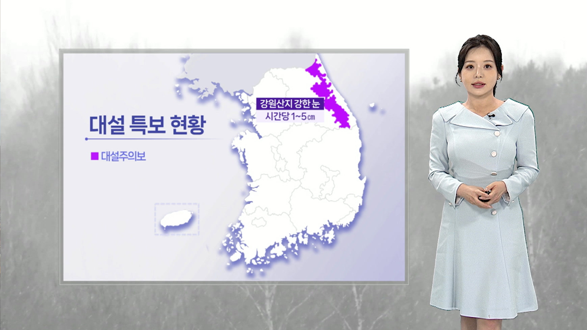 오늘 오후부터 내일 새벽 사이 시간당 최대 5cm 안팎의 눈이 강하게 쏟아질 때가 있겠습니다.