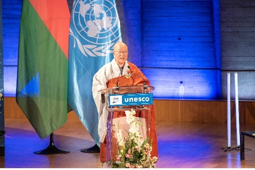 유네스코 국제평화회의에 참석해 기조연설을 하는 수불스님[사진/BBS불교방송 제공] |