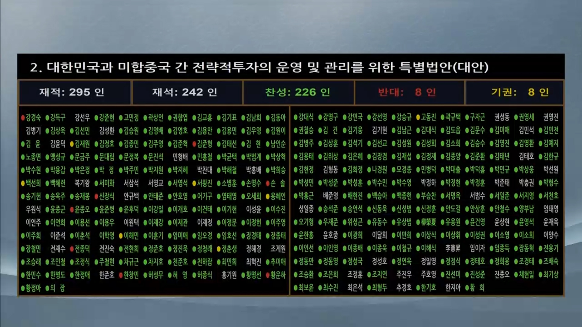 찬성 226인 반대 8인 기권 8인