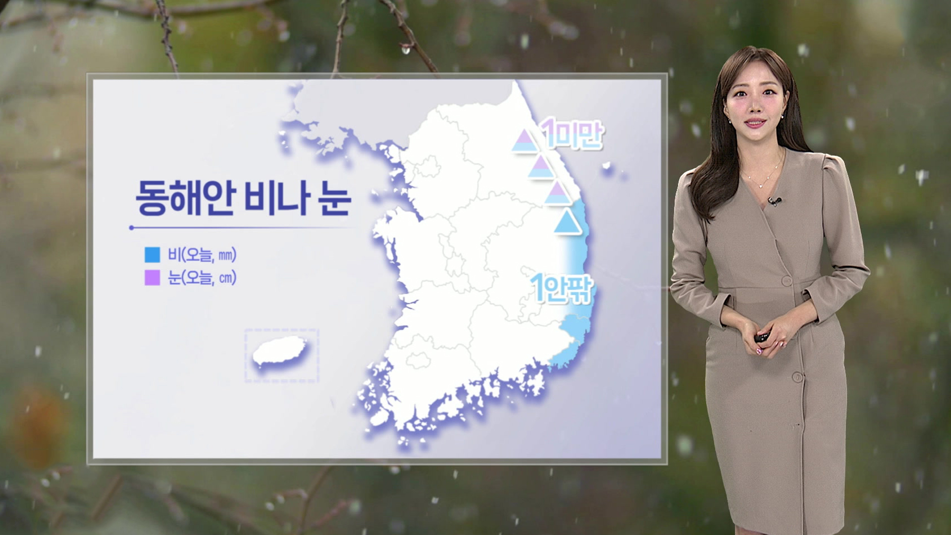 예상 강수량은 경북 동해안에 1mm 안팎이 되겠고요.