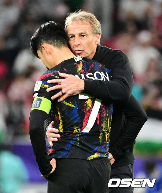 [OSEN=알라이얀(카타르), 지형준 기자] 한국이 결승 진출에 실패했다.위르겐 클린스만 감독이 이끄는 대한민국 축구대표팀은 7일 0시(한국시간) 카타르 알라이얀 아흐마드 빈 알리 스타디움에서 요르단과 2023 아시아축구연맹(AFC) 카타르 아시안컵 4강전을 치러 0-2로 패했다. 결승 진출에 실패했다. 동시에 64년 만의 우승도 일궈내지 못했다.클린스만 감독이 손흥민을 위로하고 있다. 2024.02.07 / jpnews.osen.co.kr |