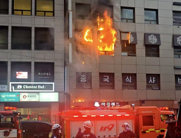 14일 오후 6시 10분쯤 서울 중구 소공동의 한 7층짜리 빌딩 3층에서 불이 났다. 연합뉴스 |