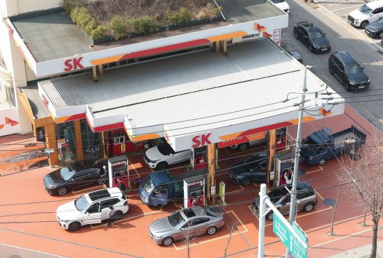 서울 내 최저가 주유소에 몰린 차량들. 연합뉴스 |
