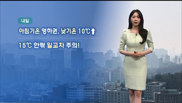 내일 전주 2도에서 출발해 낮기온 14도까지 오르겠고요.