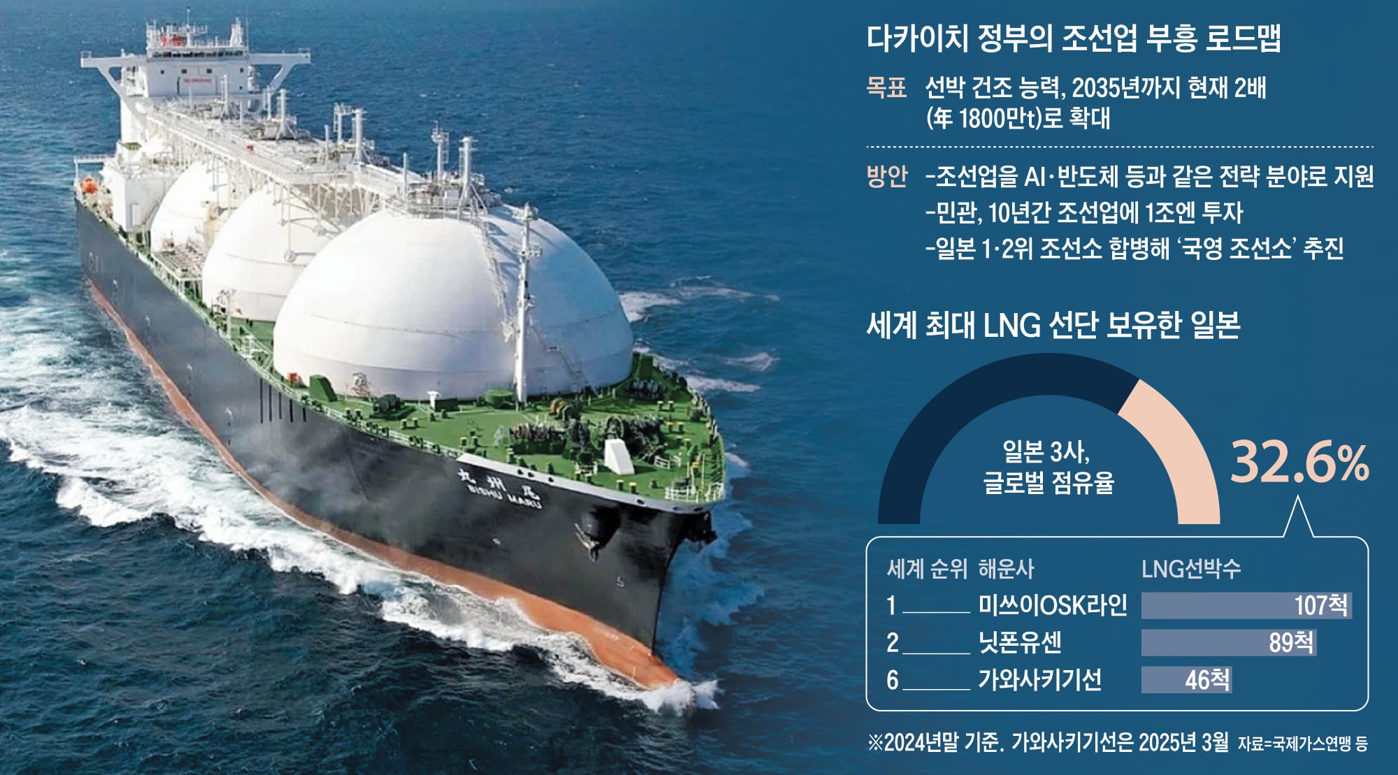 전문가들은 다만 일본의 ‘자국 발주-자국 건조’ 생태계가 안착할 경우 시장 판도가 흔들릴 수 있다고 경고한다. 권효재 서울대 해양시스템공학연구소 연구원은 “대형 컨테이너선과 LNG선 등 일부 고부가가치 선박은 그간 일본 조선업의 ‘약한 고리’였다”며 “일본 민관이 이 분야 자국화를 추진할 경우 장기적으로 국내 업계 타격이 불가피할 것”이라고 했다.
